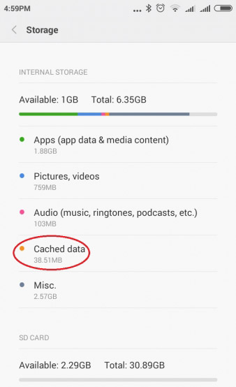 Se desideri cancellare tutti i dati memorizzati nella cache di tutte le app, vai su Impostazioni> Memoria e tocca Dati memorizzati nella cache, quindi tocca OK.