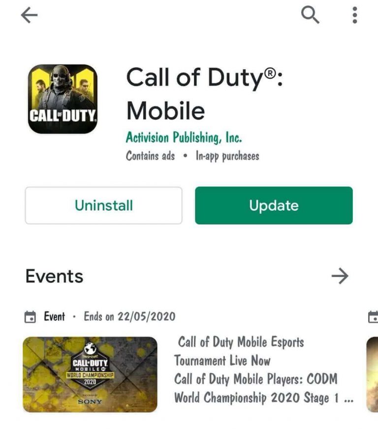 - Aggiorna l’app Call Of Duty: Mobile Gioco se obsoleta