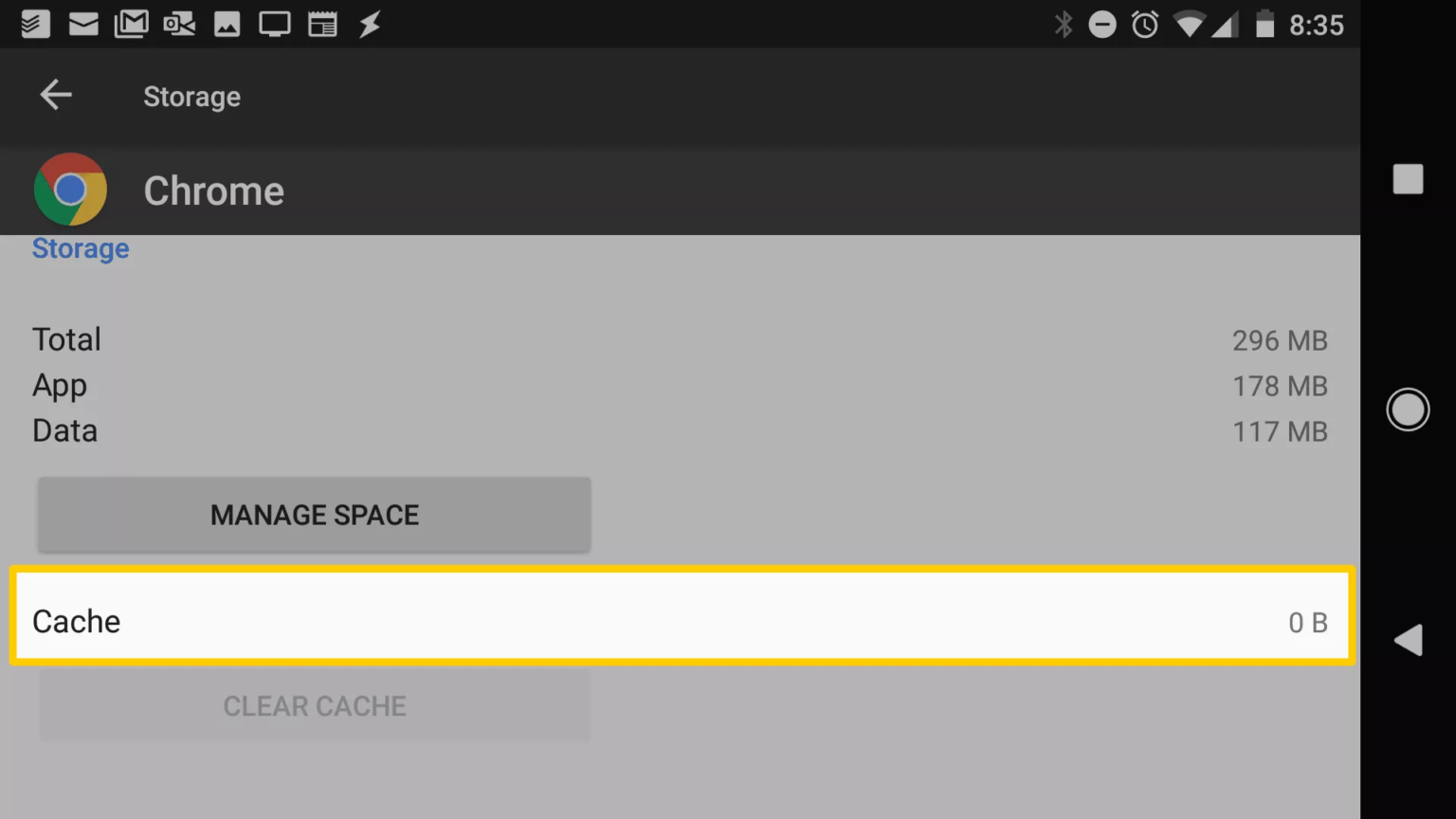 - Dopo aver svuotato la cache, verrà visualizzato l’utilizzo della memoria 0 MB
