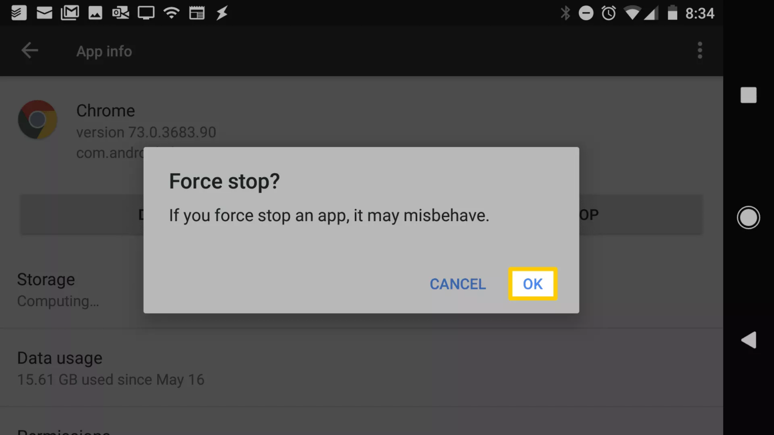 - Fai clic su di esso e otterrai un messaggio popup che dice, forzare l’arresto di questa app si comporterà. Basta fare clic su OK