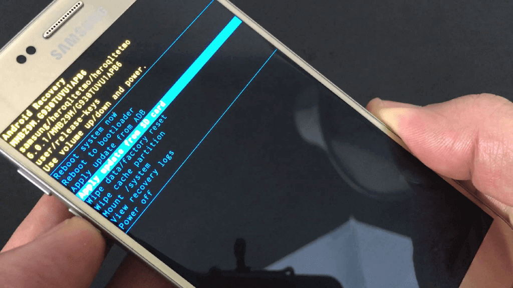 - In questo modo verrà avviata la modalità di recupero stock che ti darà la possibilità di cancellare la cache del dispositivo