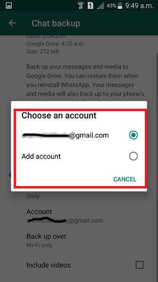 Se continui ad affrontare lo stesso problema con il backup dei dati di WhatsApp, ti suggerirò di utilizzare un account Google Drive diverso. Se non disponi di altri account su Google, creane uno nuovo e modifica le impostazioni di backup nell’app. Successivamente, controlla se il processo di backup funziona correttamente o meno.